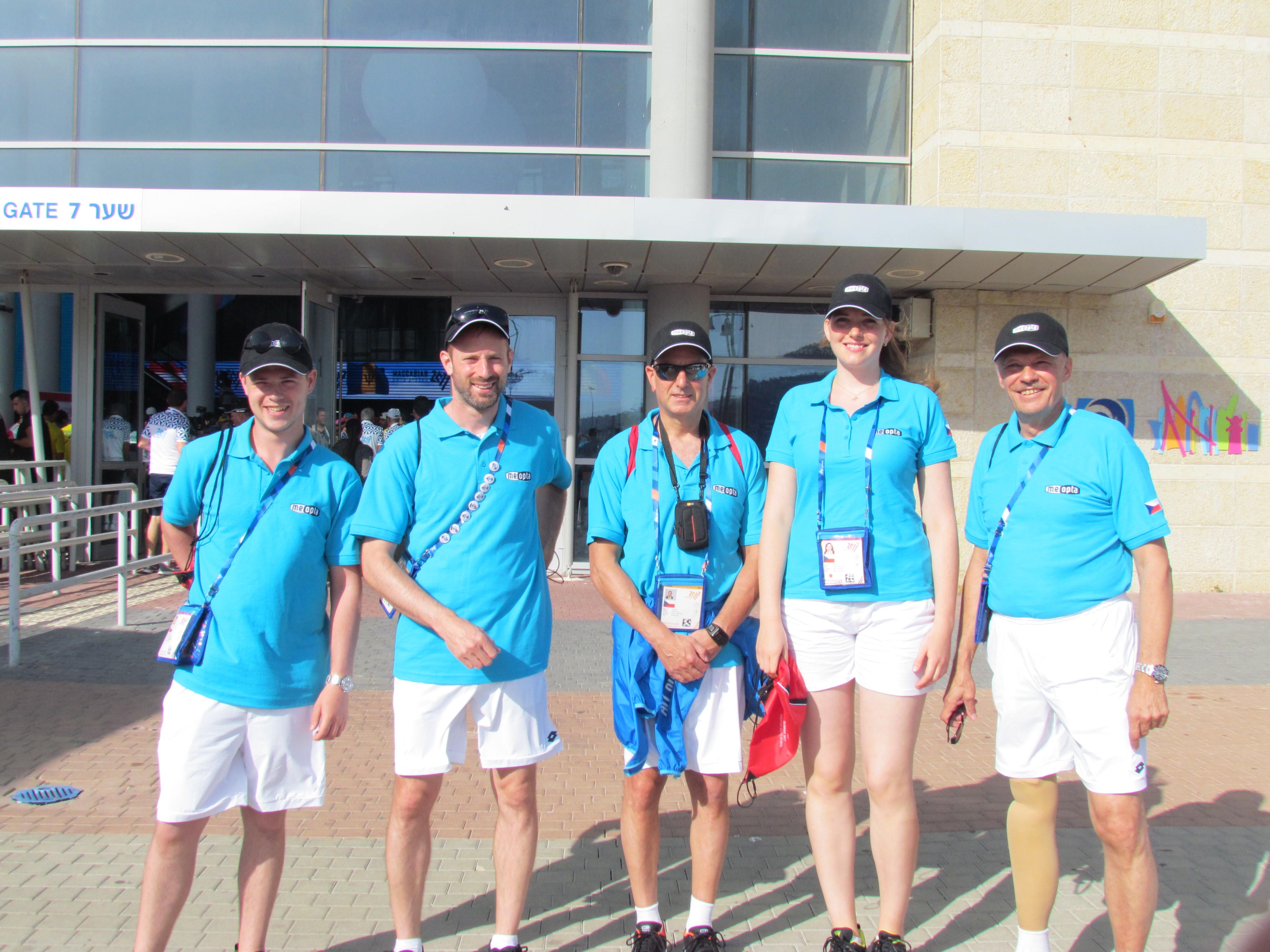 4 sportovci (V. Dub, D. Braun, P. Eisner, H. Klofáčová) s vedoucím delegace R. Gronským