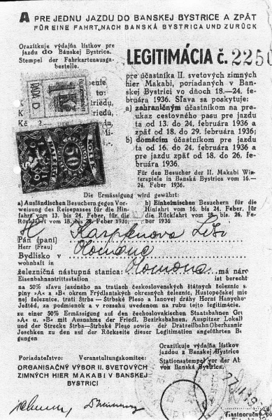 Není bez zajímavosti, že účastníci 2. světových zimních her měli 50% slevu na československé státní železnici – legitimace účastnice Lisl Karpfen (nar. 1914) z